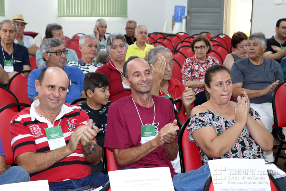 Representando todos os ex-alunos, Jorge Vanderlei da Silva, ex-membro do Conselho Superior do IFSULDEMINAS, Produtor Rural e Técnico em Agropecuária, é presença garantida em todos os Encontros de Egressos. Ele emocionou ao público com suas palavras. “Foi aqui que aprendemos a ser homens, amar ao próximo, amar à família, enfim, a frequentar a sociedade. Eu sei que tudo o que nós somos e tudo o que nós temos, devemos à Escola. Eu espero que essa juventude que hoje frequenta a Escola continue com o mesmo espírito. Nós amávamos nossos professores, nossos funcionários, nós éramos uma família e isso precisa continuar.”