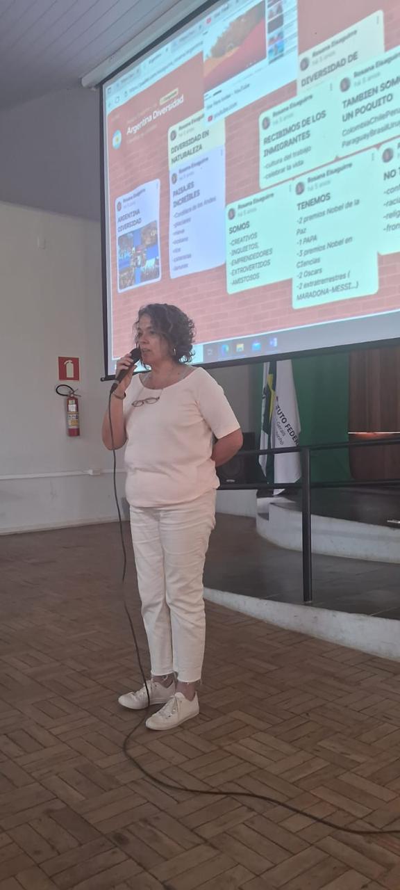 A docente argentina Rosana Messi apresentou um pouco sobre a cultura da Argentina e suas peculiaridades na palestra "Veni a Conocer Argentina". Segundo a coordenadora do evento, a palestra foi muito interativa, permitindo aos participantes sanar suas dúvidas e curiosidades sobre o país vizinho.