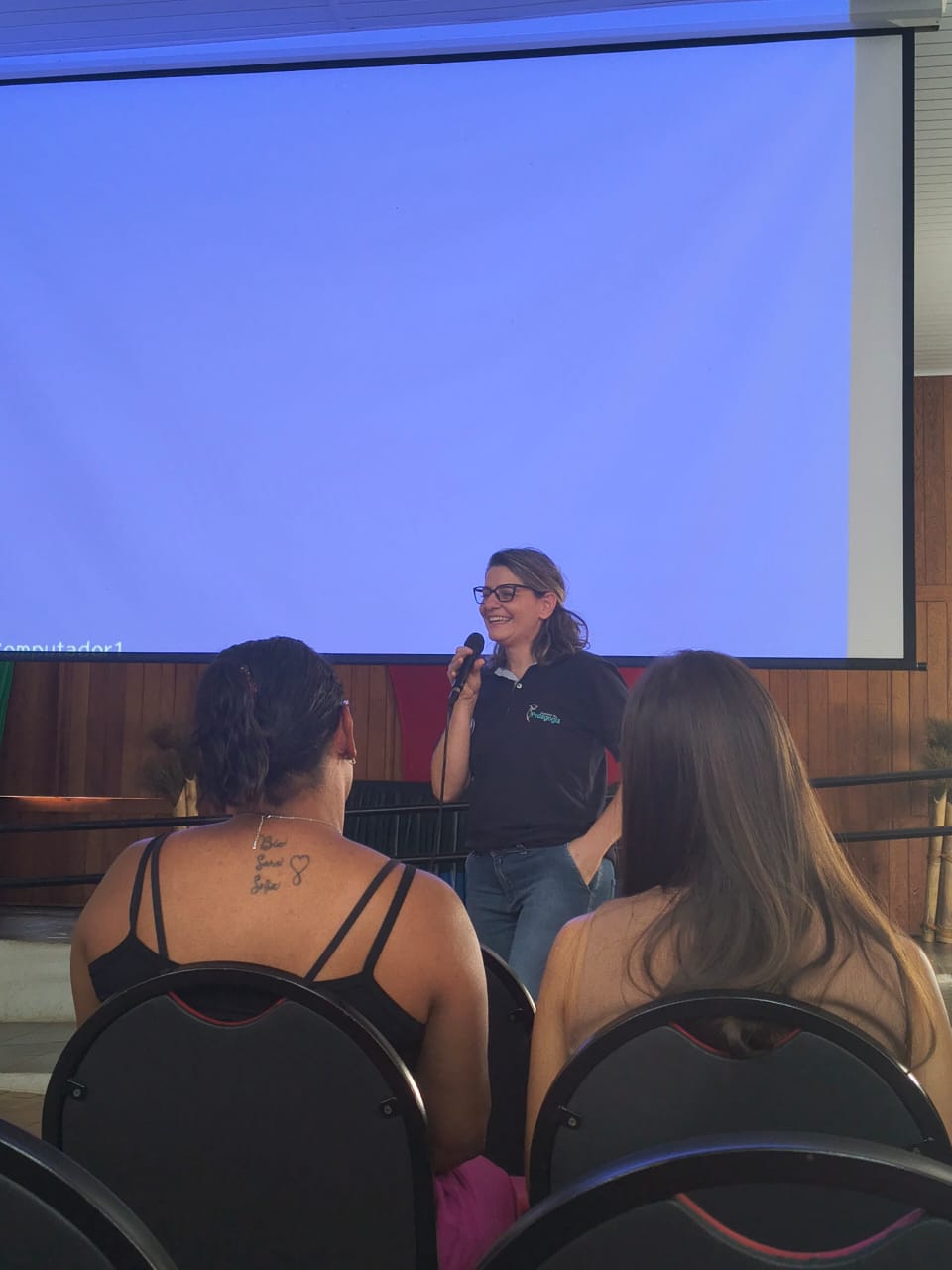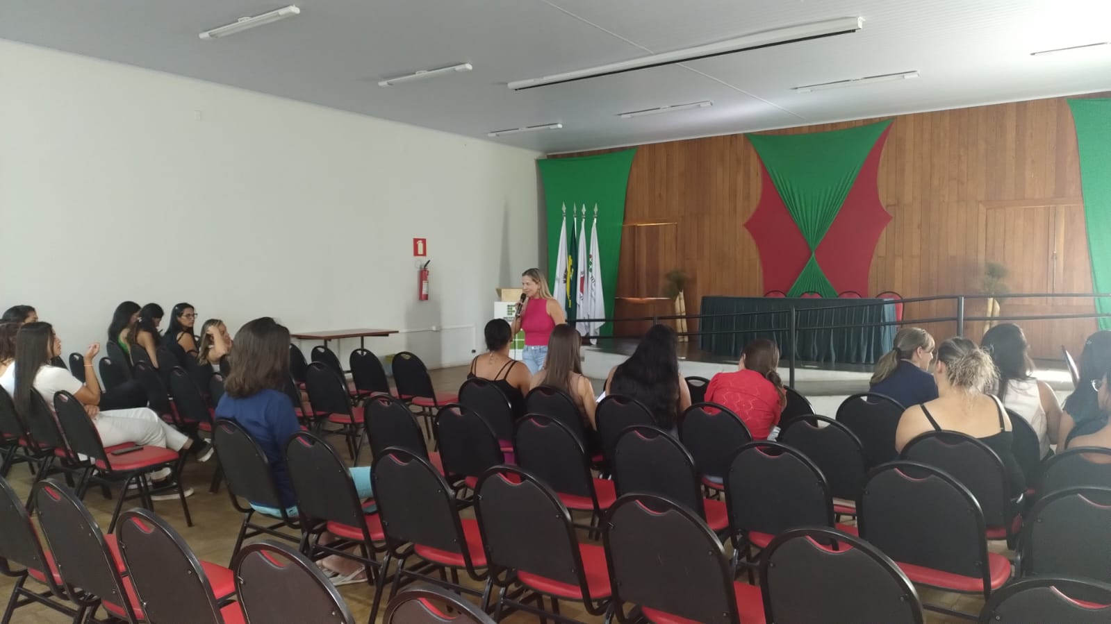 A abertura foi conduzida pela professora Valdirene, que deu as boas-vindas aos estudantes e apresentou a proposta formativa do curso, destacando sua organização, seus objetivos e o compromisso institucional com a formação de professores. Na sequência, a professora Cristiane Baldan apresentou a Brinquedoteca do campus, ressaltando sua importância como espaço pedagógico de experimentação, e as disciplinas de Práticas Integradoras (PIs), fundamentais para a articulação entre teoria e prática.